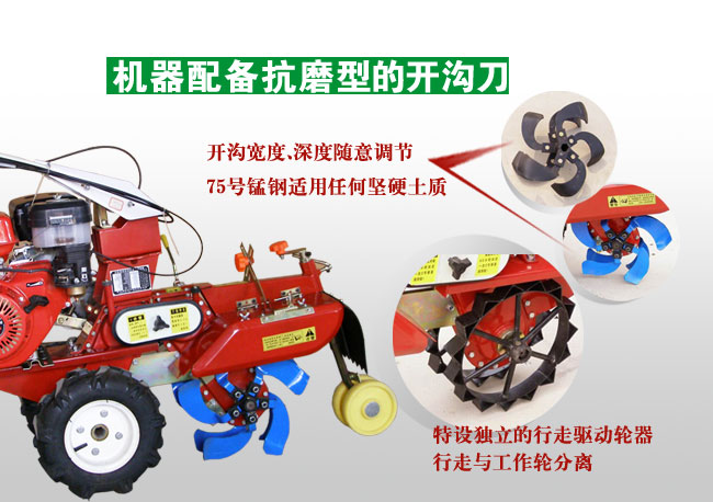 多功能開溝培土機可以實現大型機械無法進入的小塊土地、大棚、茶園、丘陵、山地等不同的地形和土質進行作業。機器本身耕作不留死角,機身輕巧靈活,把手可360度旋轉,操作簡單,老少皆宜。開溝培土機尤其是大蔥,大姜、土豆、煙草、甘蔗、葡萄等經濟作物的作物的開溝培土等作業,高效快捷,方便好用。現開溝培土機遠銷20多個國家和地區。公司生產的開溝培土機更是在國內銷售到各個地區受到了廣大農戶的一致好評。